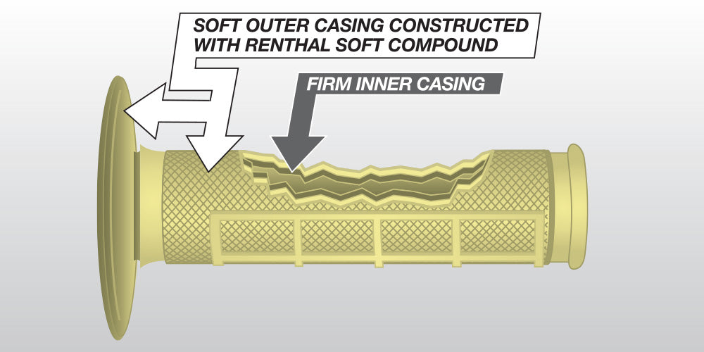Renthal Dual Series combine the durability of our firm compound grips with the feel and absorption of our soft compound.